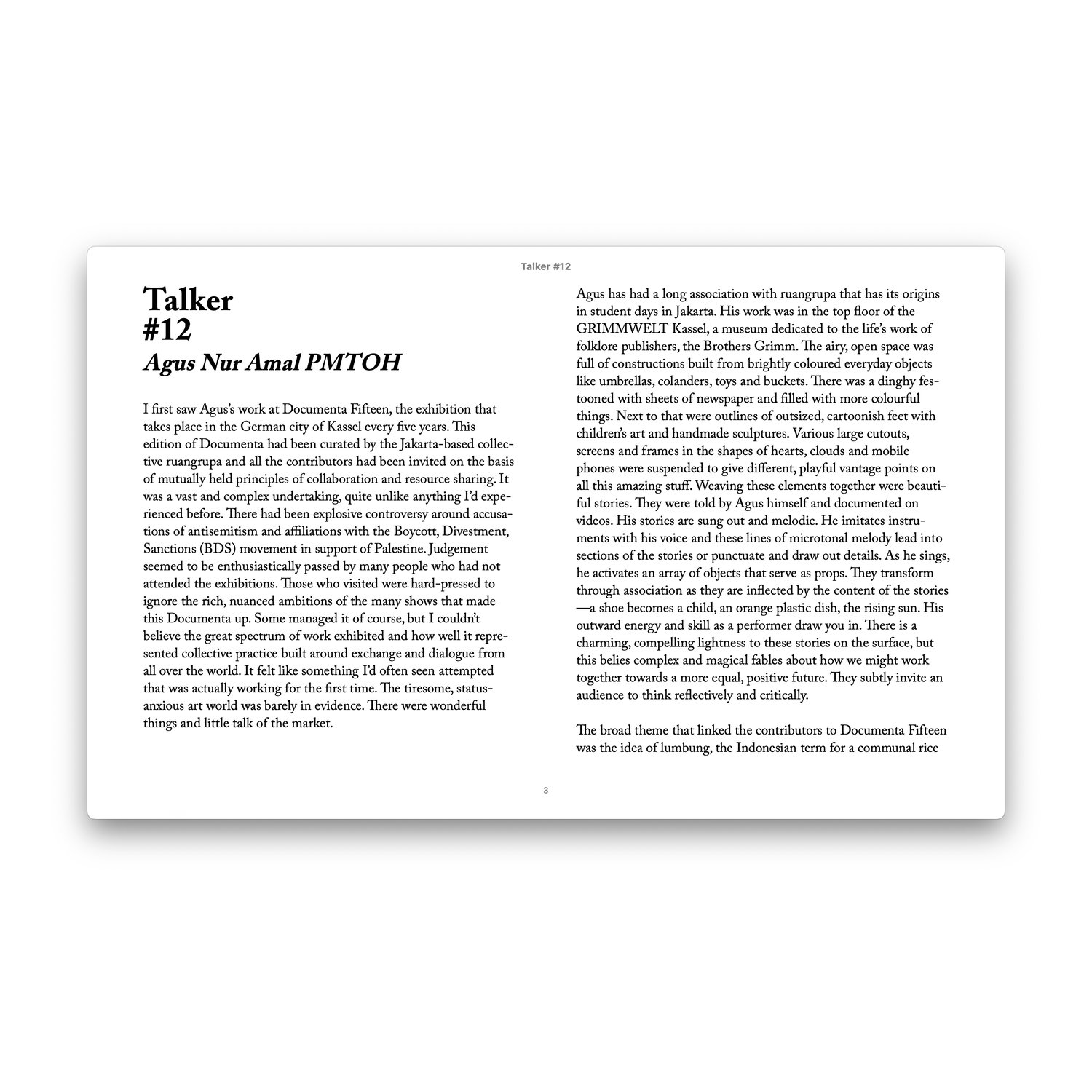 Issue #12 is a conversation with Agus Nur Amal PMTOH.